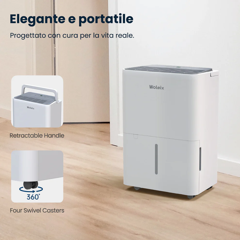 Su gran potencia y capacidad de eliminar la humedad, lo hace ideal para trabajos duros y gracias a su manguera de drenaje de un metro de longitud podrás dejarlo funcionando el tiempo necesario para secar sótanos o garajes. El Woleix WD30 también dispone de un depósito de 3,4 litros, para que no tengas que preocuparte de estar continuamente vaciándolo.